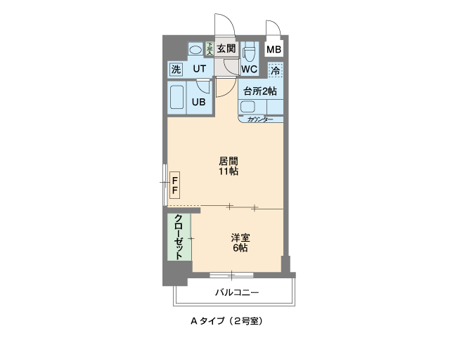 | 各室設備 | ドアスコープ・ドアロック、緊急通報コール設置、灯油FFクリーンヒーター、ガス給湯(LP)、エアコン(冷房のみ)、カウンター付対面キッチン、収納、浴室・トイレ別、ユニットバス、シャワー付洗面化粧台、洗濯機パン、温水洗浄便座、バルコニー | ||